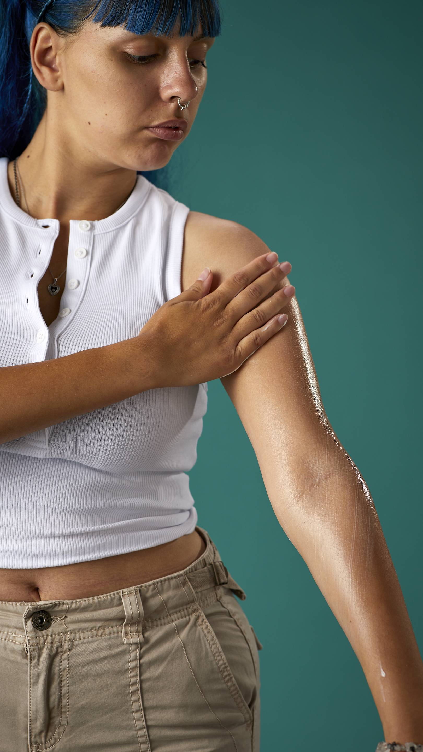 - Occlusive almond oil gives skin a beautiful sheen and helps to prevent water loss.