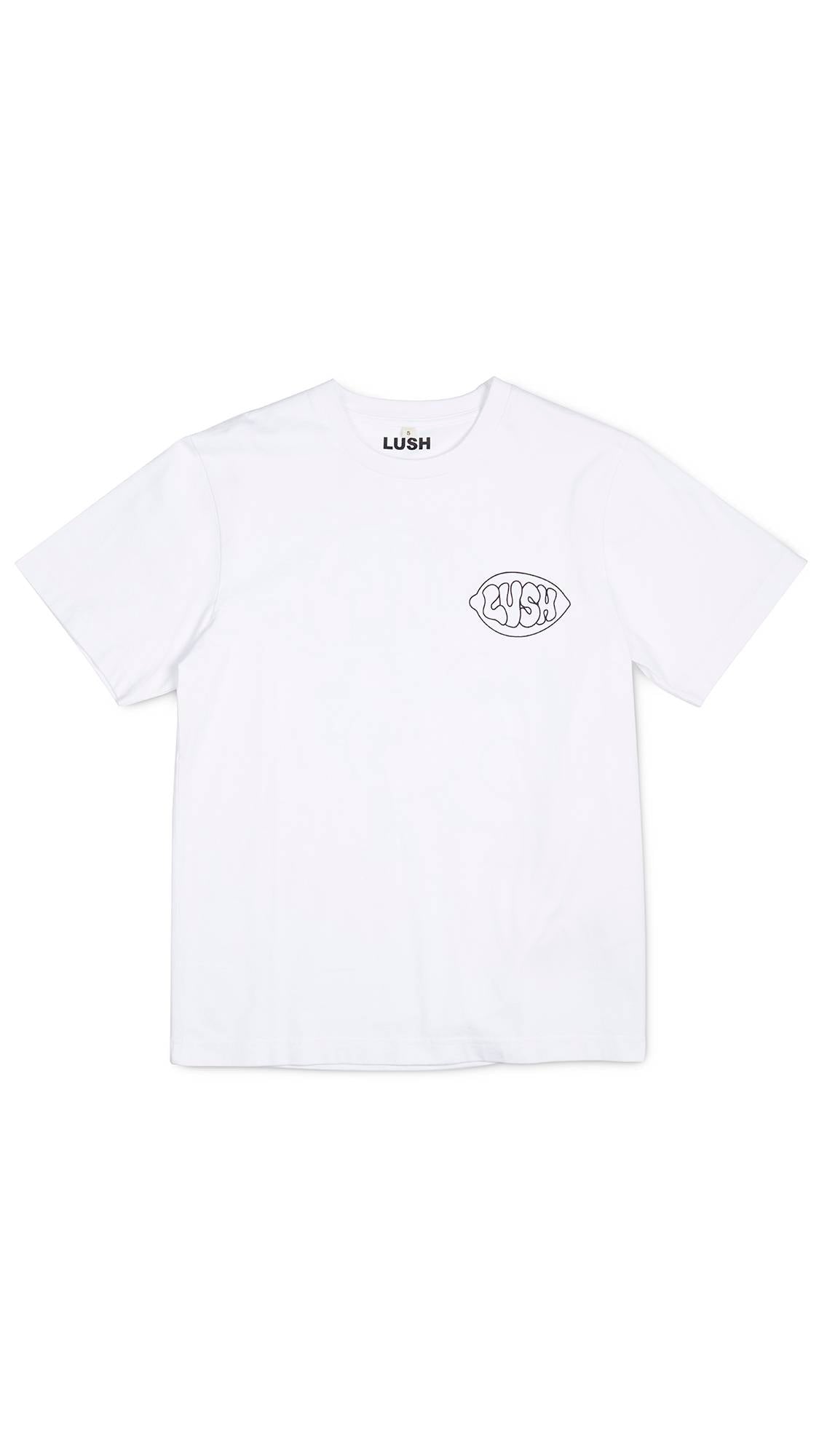Fresh ingredients are intrinsic to Lush. Join us in a colorful celebration of this core Lush value at the heart of our philosophy while you keep it classic with this versatile black and white, 100% organic cotton tee. The print was designed in collaboration with an artist local to the U.K., Dorset and features a small front pocket print and a larger print on the back.