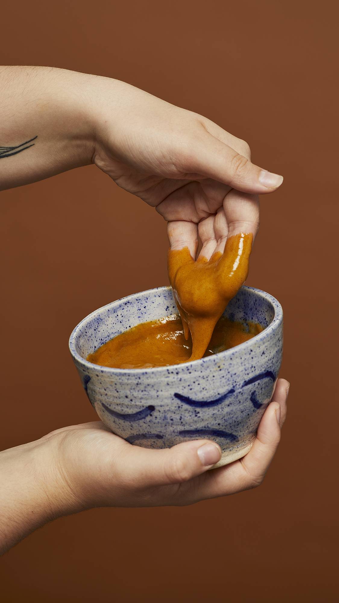 2. Slowly add several ounces of boiling-hot water to the solid treatment and stir gently using the wooden stick. Take your time, adding water as needed, and allowing the product to thicken until you're left with an empty stick and a rich, creamy treatment. This should take around five minutes.