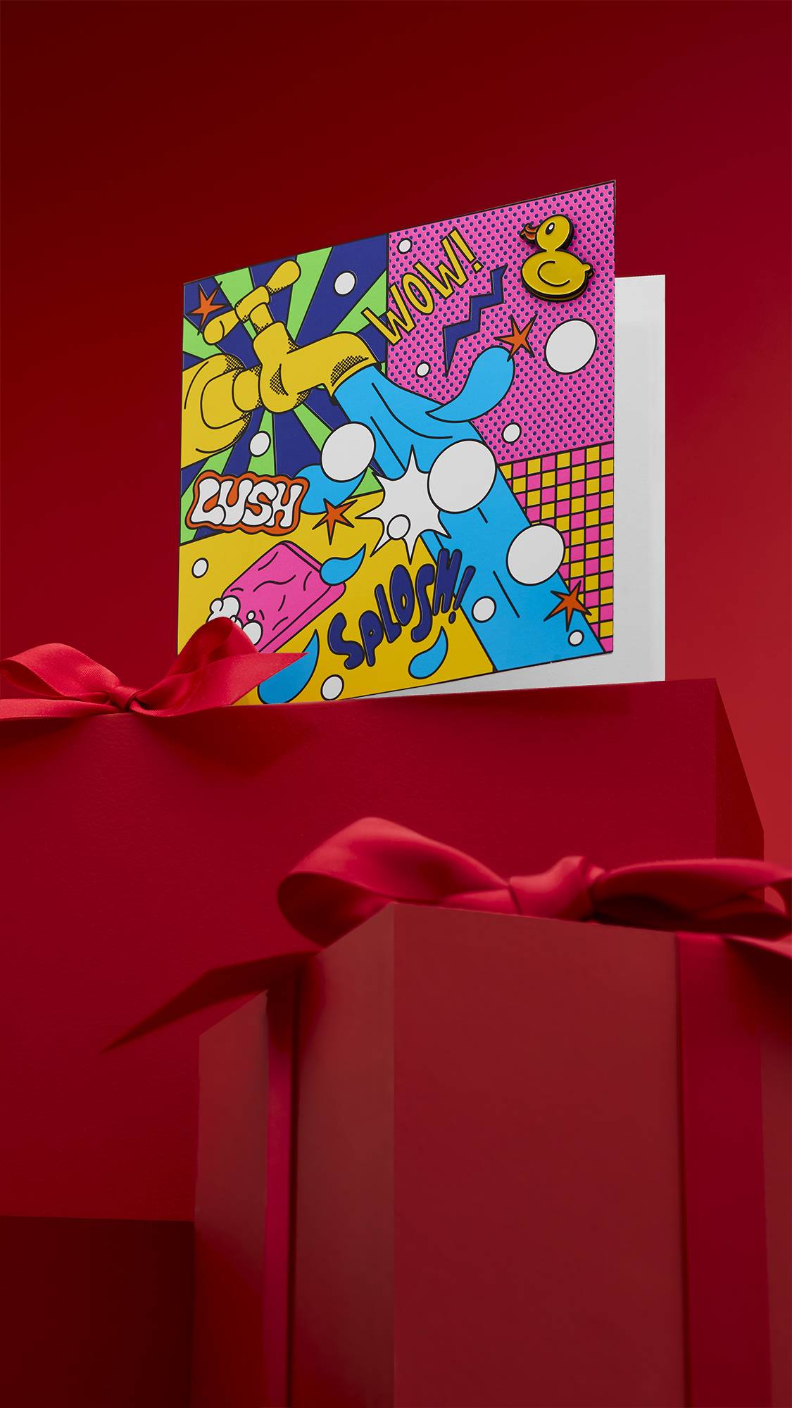 "A design where Lush meets pop art in a bold, joyful collision of color, pattern, and play! A celebration of bathing as vibrant self-expression through bold blocks of electric color and eye-popping patterns colliding with juicy halftone patterns. A riot of neon nostalgia and joyful illustrations that turn every splash, soak, scrub into a pop-powered masterpiece." — Lush creatives