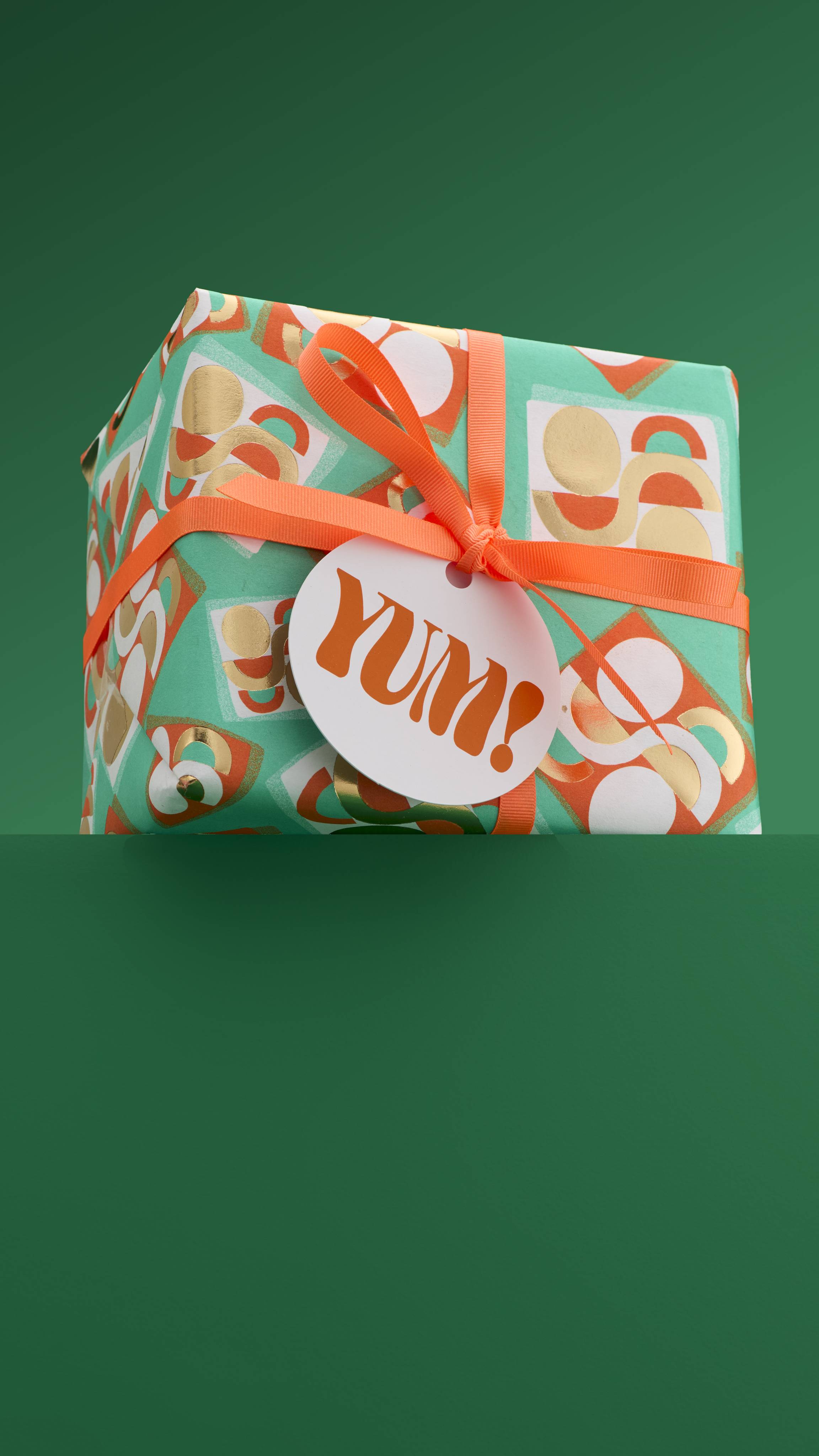 Gift Designer, Shannon Lund designed this gift with, “playful abstract shapes and vibrant colors to create a festive pattern that subtly evokes the sweetness and joy of classic Christmas treats.”